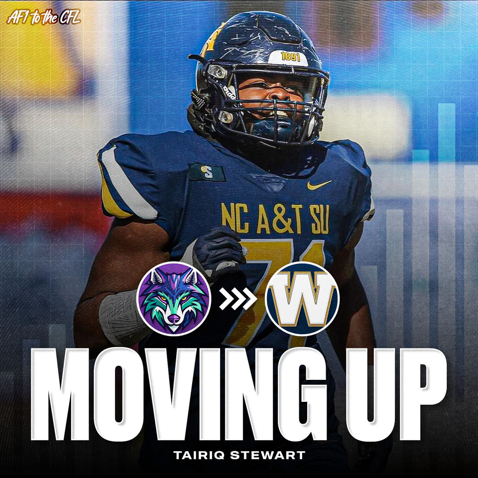 The Washington Wolfpack are excited to announce that Tairiq Stewart, offensive lineman, has signed with the Winnipeg Blue Bombers of the Canadian Football League. Tairiq is an arena football veteran and was a key signing for the Wolfpack ahead of the 2026 Arena Football Season. He will be missed in Everett, but the Pack cannot wait to see his career take the next step!
