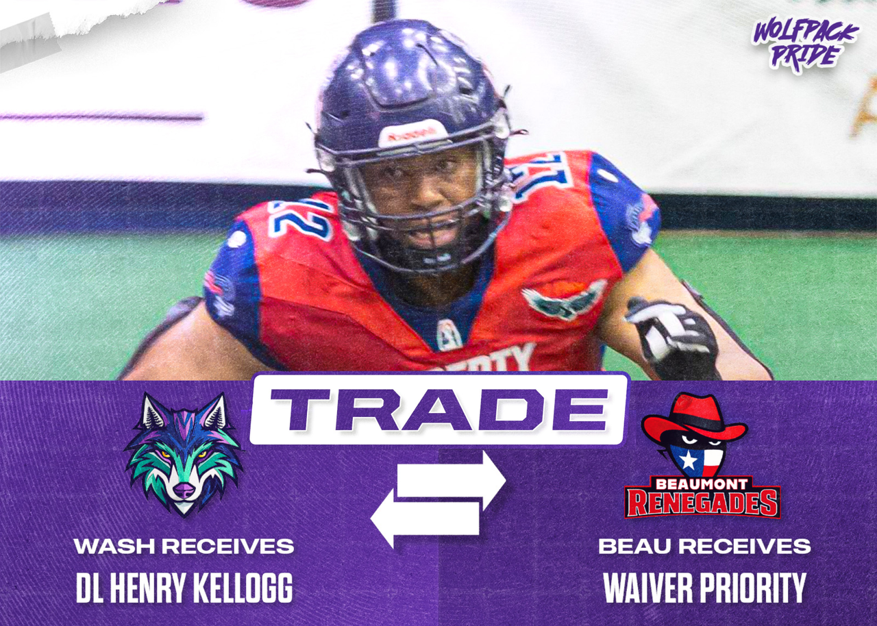 The Washington Wolfpack are excited to welcome All-Arena Defensive Lineman Henry Kellogg to the team! Kellogg is being acquired via trade with the Beaumont Renegades. Washington is sending their waiver claiming order to the Renegades in exchange for Kellogg.